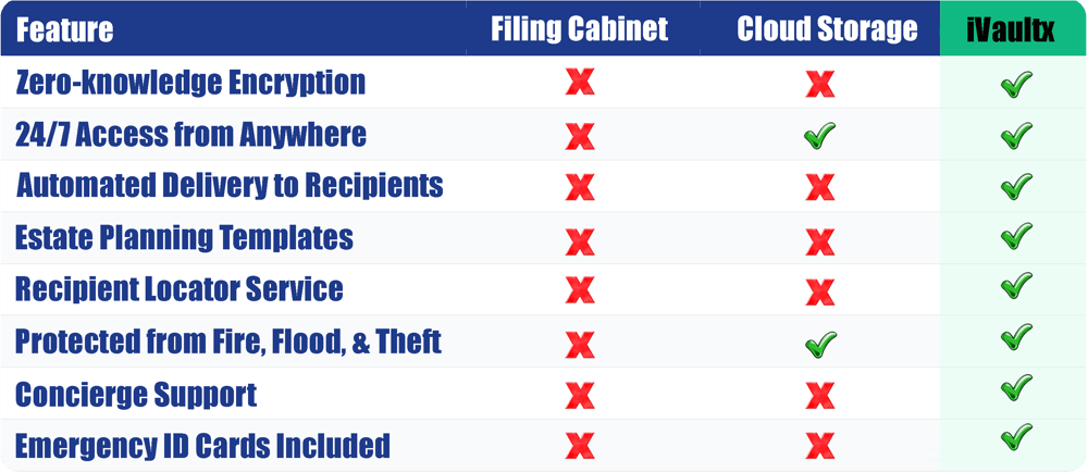 Why iVaultx vs. Filing Cabinets or Cloud Storage?